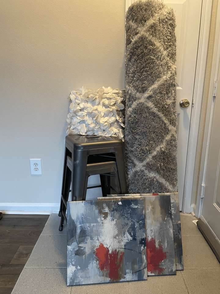 My most recent Facebook Marketplace jackpot was when I stumbled into a real estate agent selling all of her showing furniture for dirt cheap! I had accumulated all major furniture (couch, chair, tv, tv stand, etc), but I didn’t really have anything on the walls. And because I have almost zero taste in interior design, I leapt at the opportunity to copy someone else’s style.