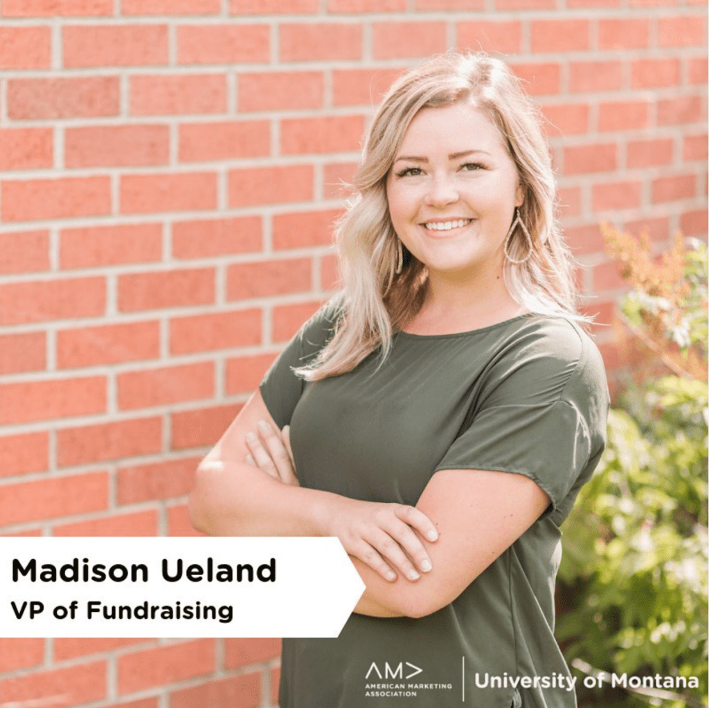 As Vice President of the American Marketing Association, University of Montana Chapter, I was responsible for raising over $8,000 in sponsorships used to send our board to the National Collegiate Conference along with hosting networking events and socials connecting students to businesses in the community.